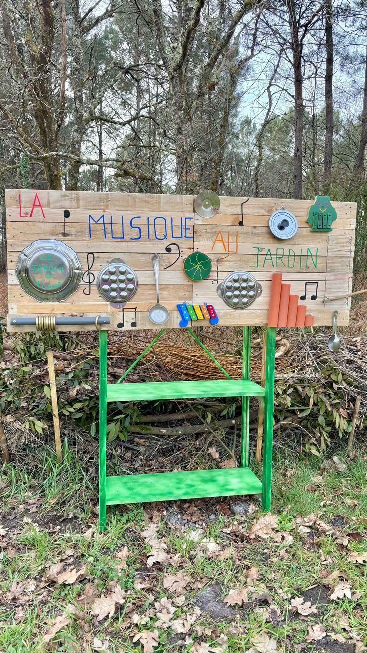 Installer un mur musical dans la cour ou en milieu naturel (casseroles, tubes, bois, objets recyclés). Les élèves peuvent y improviser, explorer les sons ou interpréter des pièces à l’extérieur.