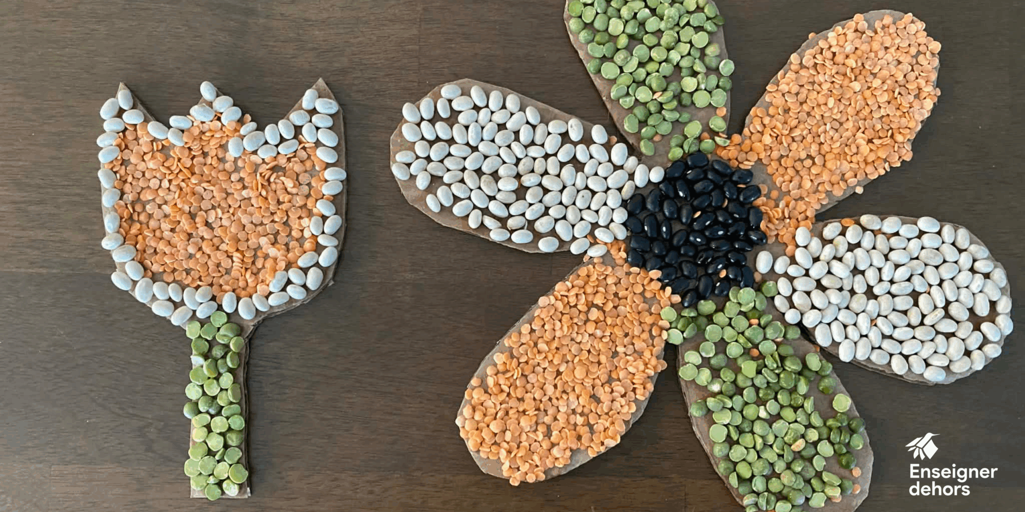 • Présenter aux élèves ce qu’est le « seed art » (art végétal) : une forme d’art qui consiste à créer des images ou des motifs à l’aide de graines. Vous pouvez également présenter l’origine de cette pratique, quelques exemples d’œuvres et des artistes qui utilisent des éléments naturels dans leurs créations (voir le document dans la section Matériel).