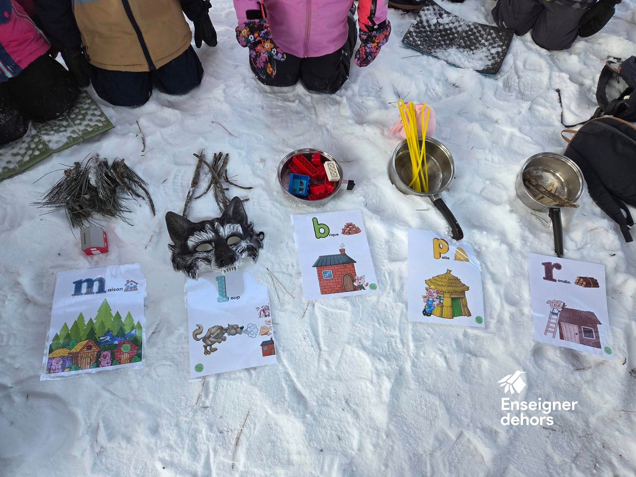 Voici une activité sous le thème des 3 petits cochons à réaliser en nature. Grâce à la lecture d’un conte, vous pourrez développer chez vos élèves la conscience phonologique, la capacité à travailler en équipe et vous vivrez une causerie mathématique.