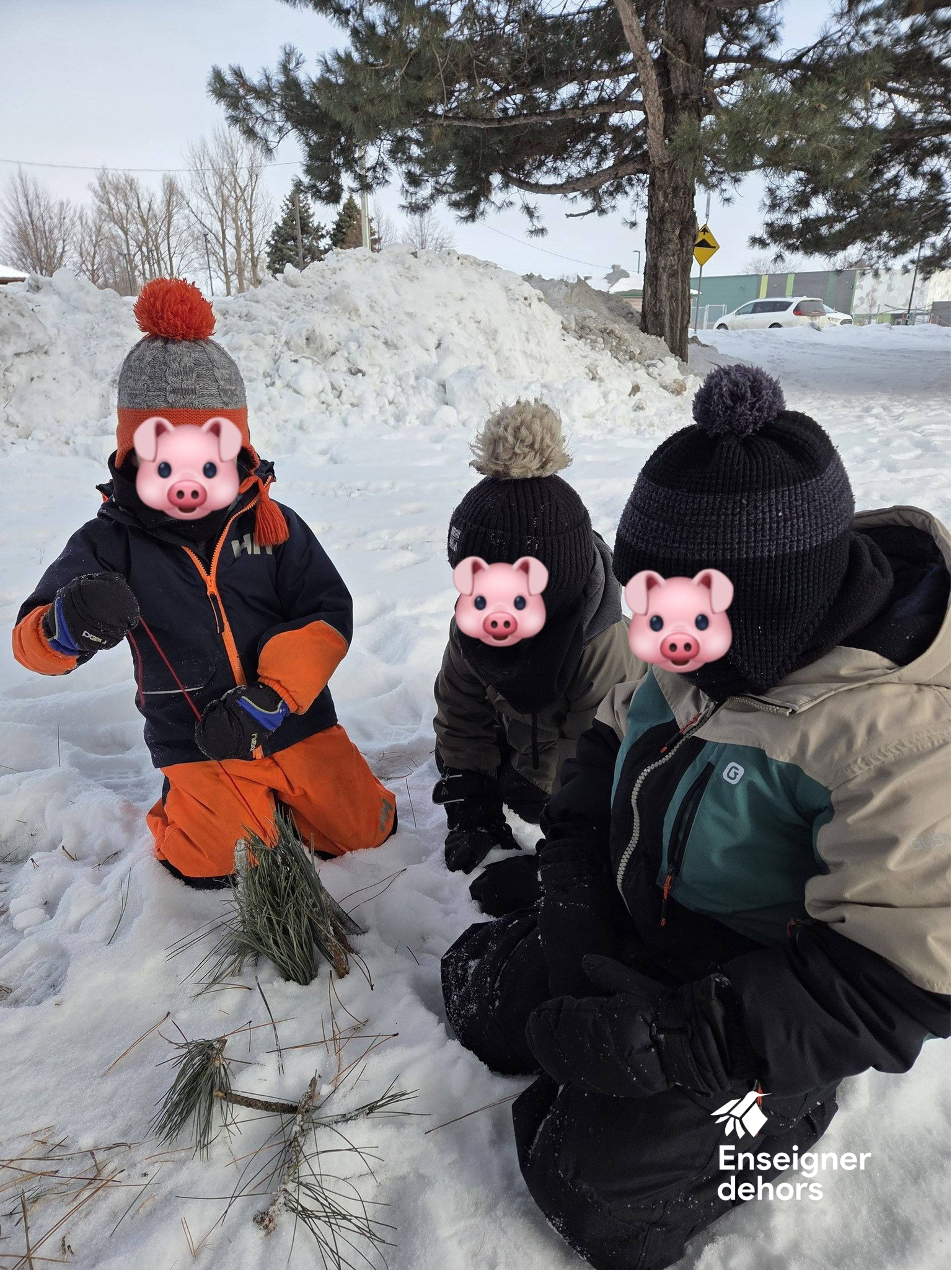 - En plus des matériaux de l’équipe, ils ont le droit d’utiliser des bouts de ficelle et de la neige.