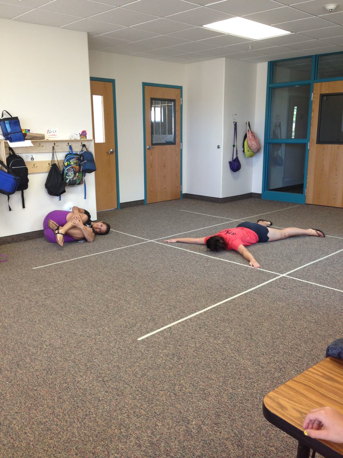 Si la réponse est correcte, l’élève va s’asseoir dans le cerceau de son choix pour représenter son équipe dans la grille.